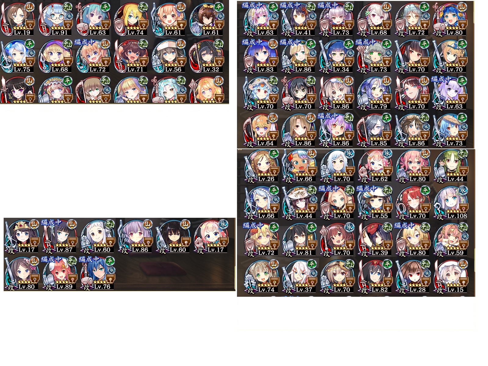 画像1枚目は左上★8[改壱]左中★7[改壱]:右上★7右下★6。画像二枚目は左上★6、左下★6[改壱]、右上右下★6[改壱]になります。