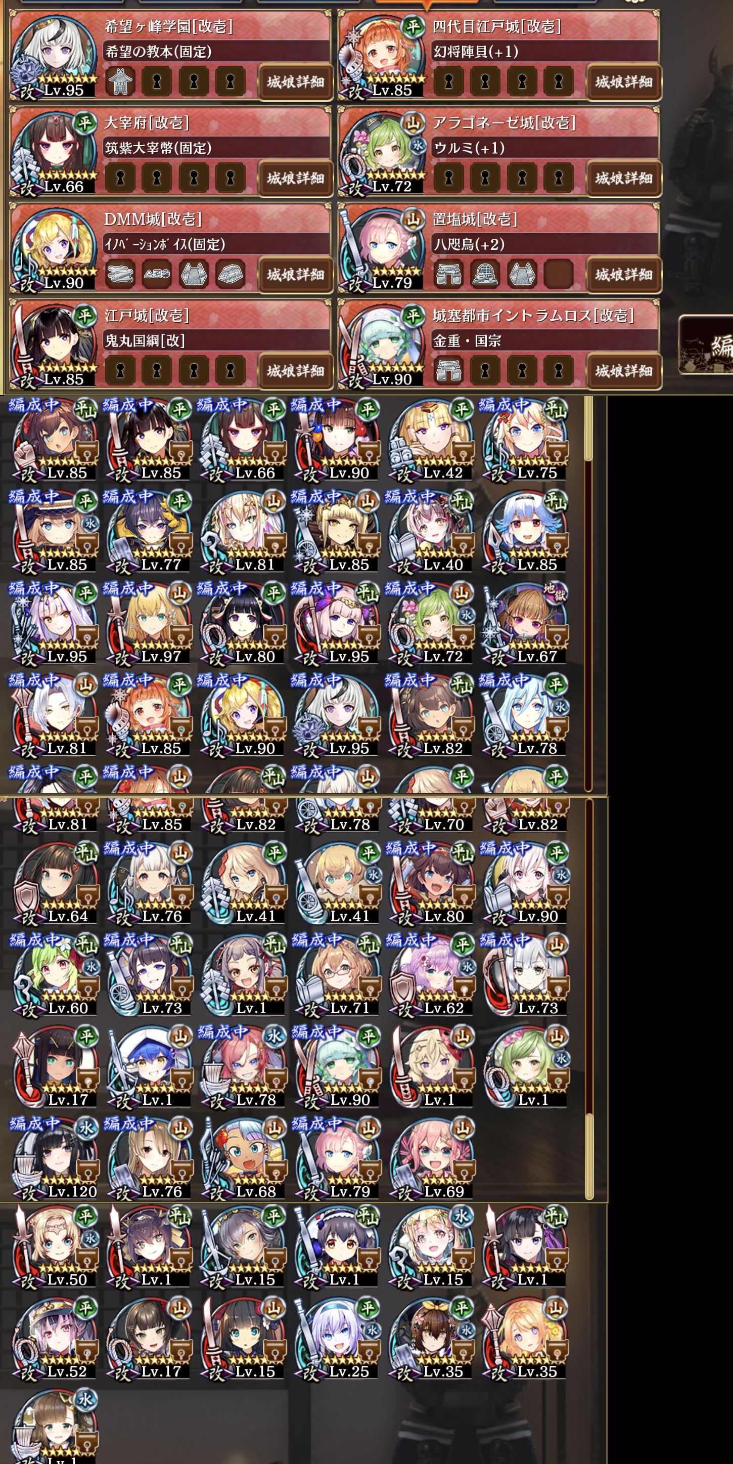 初心者です。最初のまっすぐ向かってくる黒水牛がどうしても超えられません。手探りに限界を感じたので、一番新しい編成と所持城娘(☆8~6まで)を見て攻略に合う城娘が居たら教えて欲しいです。ちなみにアラゴネーゼを19に置いて何度か迎え打とうとしたのですが、後退無効の言葉を見逃していました…。大宰府とイントラムロスは7と4、残りはアラゴネーゼの周りに配置していました。