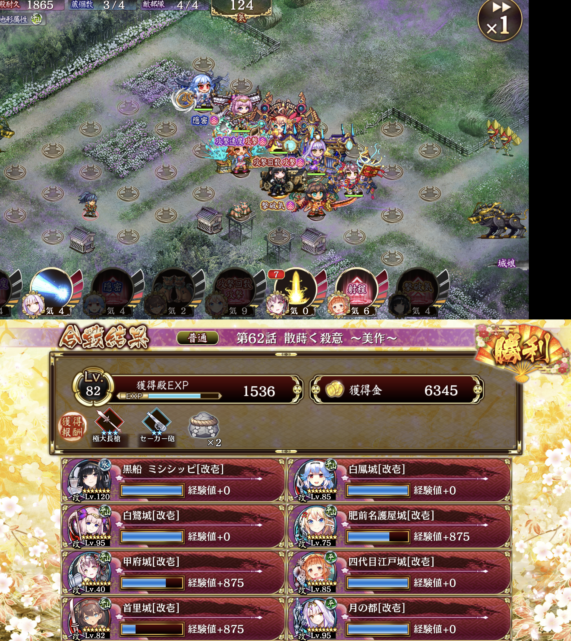 質問者です、アドバイスを参考にしたところ、すんなりクリアしました!上に記載されたコメントの編成に追加して、彦根は居なかったので代わりに首里城、計略再使用短縮として月の都を連れていきました。あと個人的にミシシッピ採用の余地があって嬉しかったです!