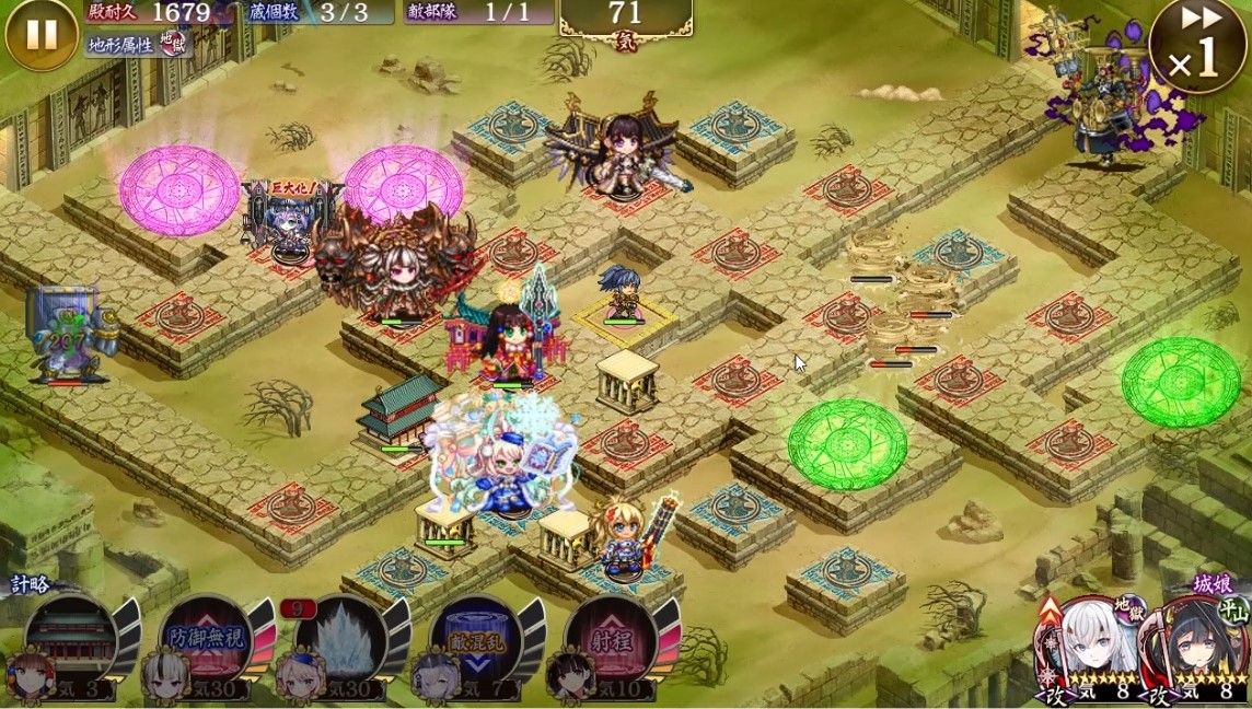 伊達君と裏大宰府が差し違える終盤までこの配置。鎌は適宜左右に散らして足止めと削り。タイミングがシビアすぎてもう一回やれと言われても無理かも