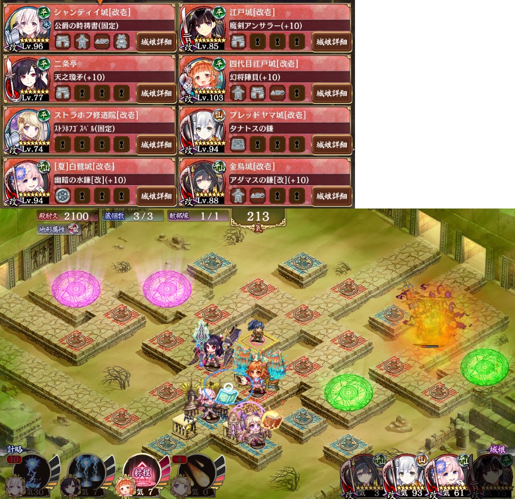 鎌を使うのです。壁は射程を伸ばした金烏城を5回投げたら倒せます。セトが出てきてからは操作が忙しいけど頑張れ。右下に出てくる佐竹虫が意外と厄介。江戸は二条亭の左に置いていました
