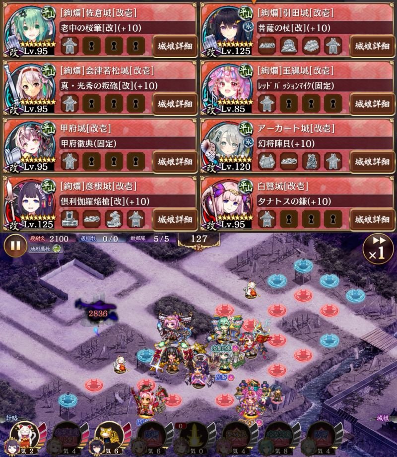 白鷺以外は再配置撤退なし2戦功。びっくりしたのが会津若松&アーカート計略で清正くんも虎くんも顔面受けできたということ。か、かたい…(確信)