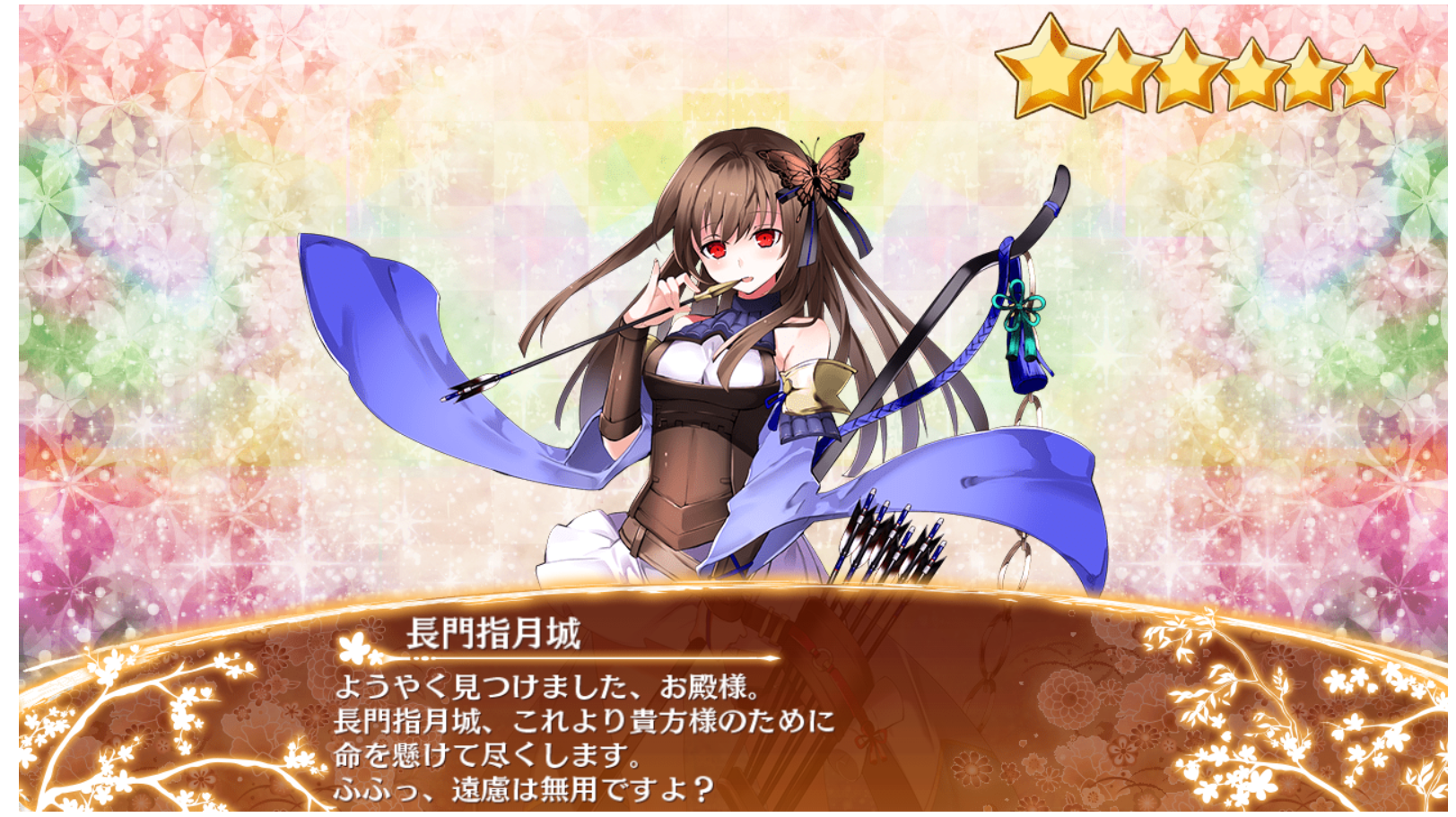 ガチャじゃないけど未所持の長門指月城出た。もう恒常落ちしてたのね。星6祈願席です。
