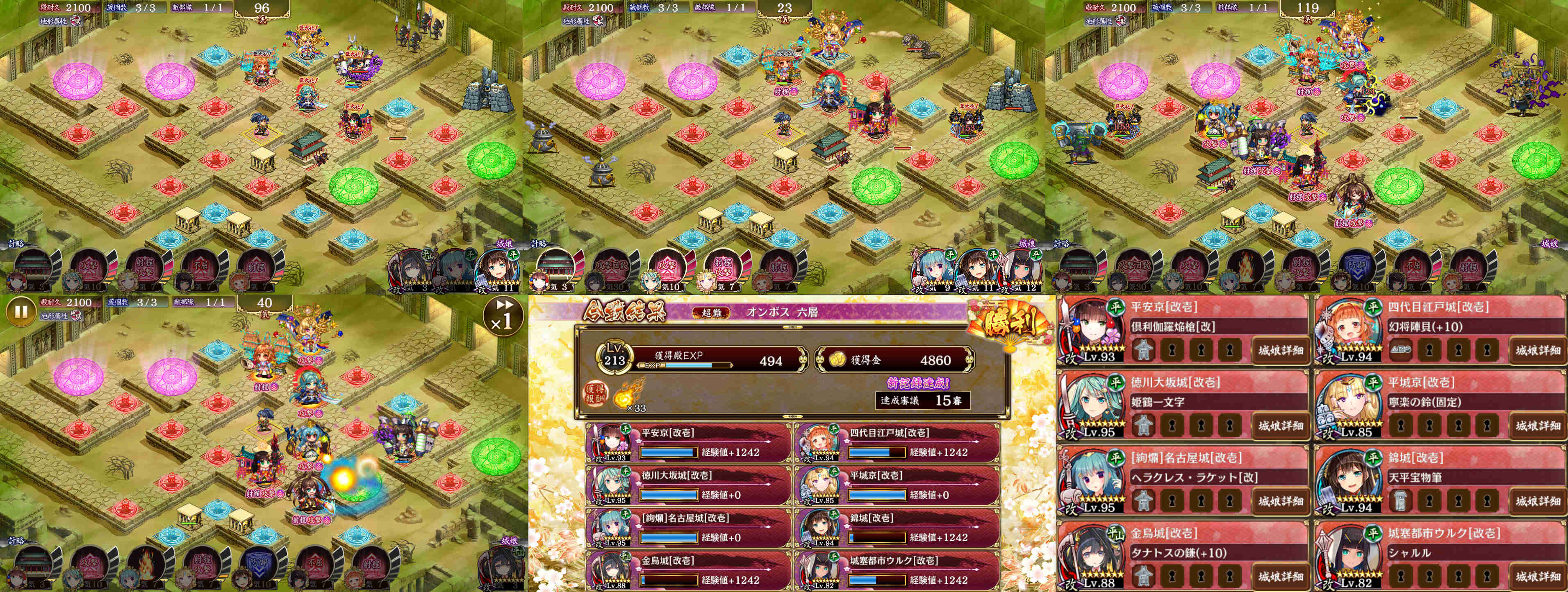 15審。平城京の動画を参考にして、江戸→徳坂、裏大宰府→絢爛名古屋にスイッチしたもの。うちの所領に江戸さんは居ない(四代目ちゃんは居る)のでこの審議は大変だった。今回ヘラクレスラケットが政宗に刺さったのが良かったと思う点。錦の施設は富士見櫓で範囲を延ばしている。配置は19→12平安、15徳坂、14平城京、11四代目、18→4→16絢爛名古屋、18,23,3,24,8など金烏(終盤は1,22も)、18→9→22ウルク、17錦、16→5→10→16→5→22平安トークン。