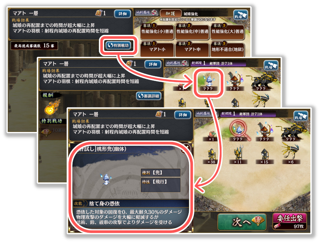 厄介な敵は合戦準備画面や合戦中の敵兵情報からどんな敵なのか確認するのじゃ