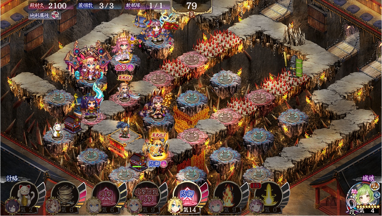 空蝉無し再配置無しで15審。11指月伏見 7ウィンザー 4彦根 持ってれば9に甲府置いてもいい。まずは指月伏見を最大化してウィンザー計略が溜まったらすぐ指月に掛ける。指月計略を大砲4体に当たる様にして発射。彦根を最大化しつつ、コーブルク計略が溜まったら掛ける。彦根のトークンを19に置く。6にプラハ3に肥前名護屋配置して、プラハを4回巨大化後肥前名護屋を最大化させていく。あとは佐竹が動き出したら竜と同時に指月の計略を当てつつ、ウィンザーの計略掛けたプラハ計略を掛けていくだけ。最後の方に佐竹が2体来る時にプラハ最大化して凌げば大体おしまい。