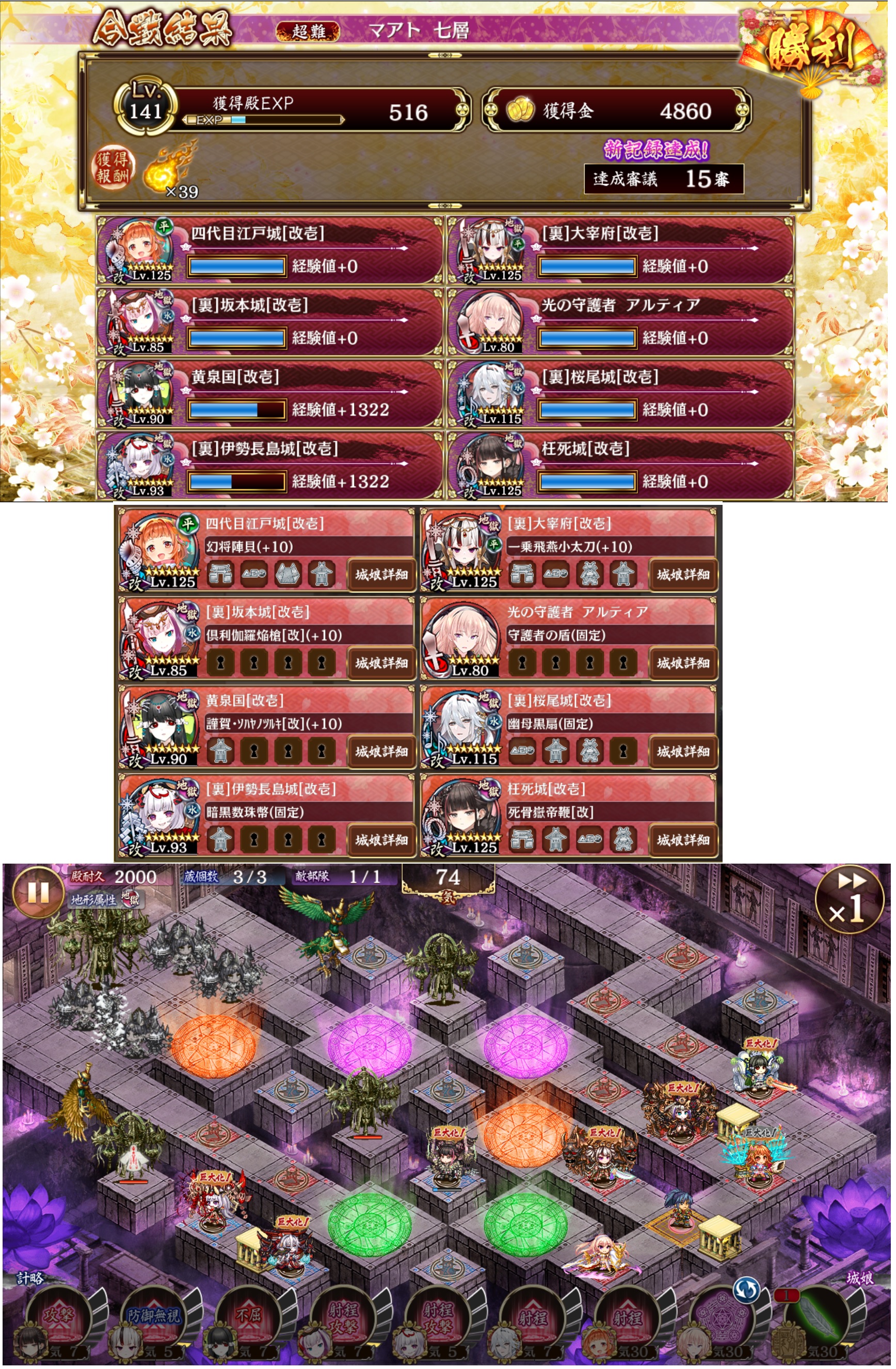 15審議クリア。裏伊勢長島が刺さるという前情報を聞いてしまったが、あとは自力……つうかパワー。どうにもクリア出来なくておーしと裏太宰府4凸させた。正しい解法は絶対これじゃない