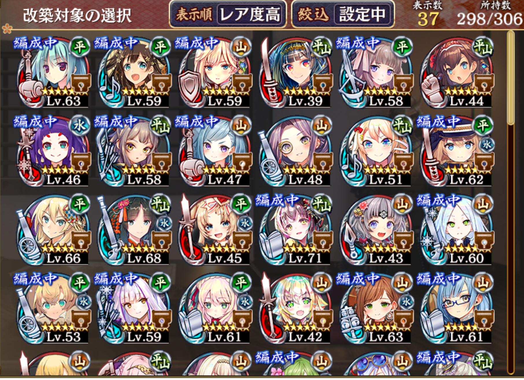 先日地獄交換について伺った弱小頭★1殿です。★7の改築をしてみようと奮起したものの誰からしたらいいかわからず……アドバイスいただけると幸いです。画像は未改築が二枚、改築済みが1枚です。手持ちのススキは3体です(絢爛のイベのススキ、周年パックのススキともに交換済みです)。