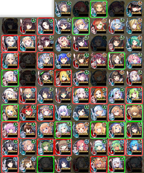 所持が歯抜けで申し訳ないけど私が超難15審で埋めるのに使ったキャラが赤枠、使ってるの見かけるキャラ・武神戦功枠で使ったキャラが緑枠。ただ囲ったキャラ全部凸に回してたら肝心の星7改築が進まないかもなので、サポーターは1~2凸で抑えるとか後々必要になったら羅紗改零で補うつもりで改築餌にするとか、ダブりの中では餌優先度下げよう程度でもいいと思う。