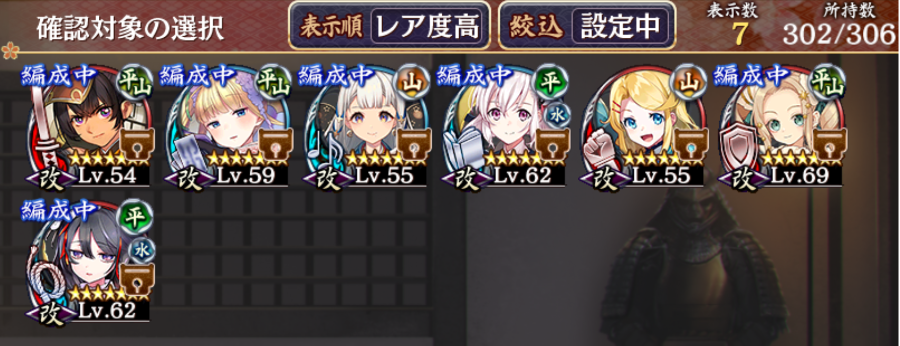 改築済み★6です。★6も改築機会がなかなかなく、辛うじて、といった感じです。