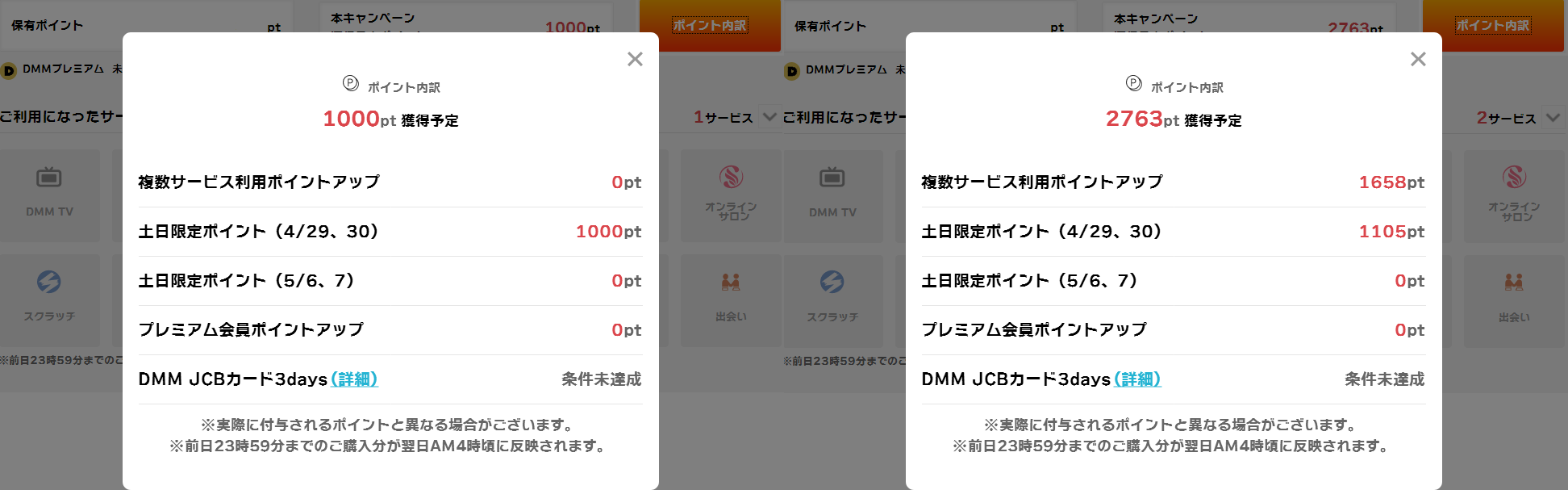 木だが月曜になってようやく2サービス分が反映された。土曜に城で10000pt、通販で1058pt使った。日曜に城の分が反映されて(左画像)、今日通販分が反映された(右画像)のでサービスによって時間差があるのかもしれない。
