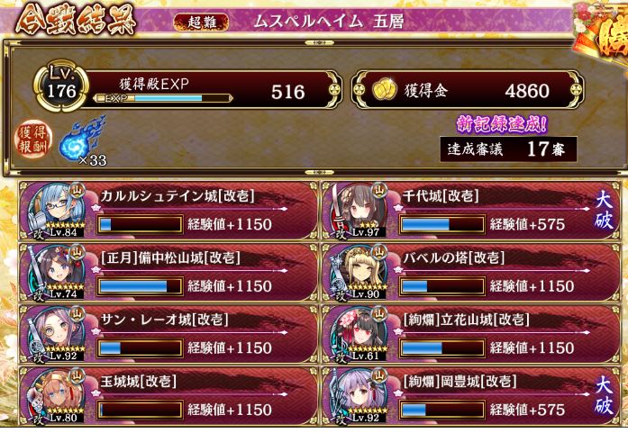 17審議。開幕、絢爛立花を4段階巨大化で気を生産してもらってサンレオ計略してバベル巨大化でいける。カルルの隙増加があれば空蝉で大破無しいけるレベルになる。(大破したけど)