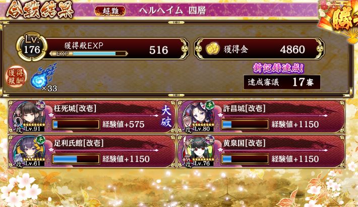 17審。足利ママで回復5倍して回復値を攻撃にのせる戦法でクリア。