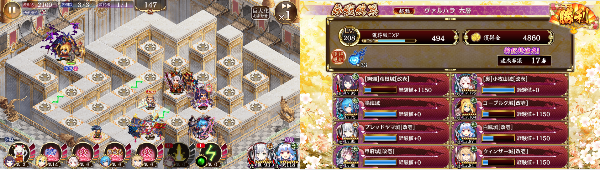 17審 歌舞なんていらねーんだよ(ひぜなご、絢爛玉縄おりゃん民) 白鳳は初手12で西洋鎧が近づいたら計略で遅延行為して初手の団体倒したら撤退、二回目のコウモリ処理後に25に再配置で火力不足で悩む右側の支援。彦根猫+鳴海計略中のナムナムでなるべく多くの気を捻出しないと気足りん