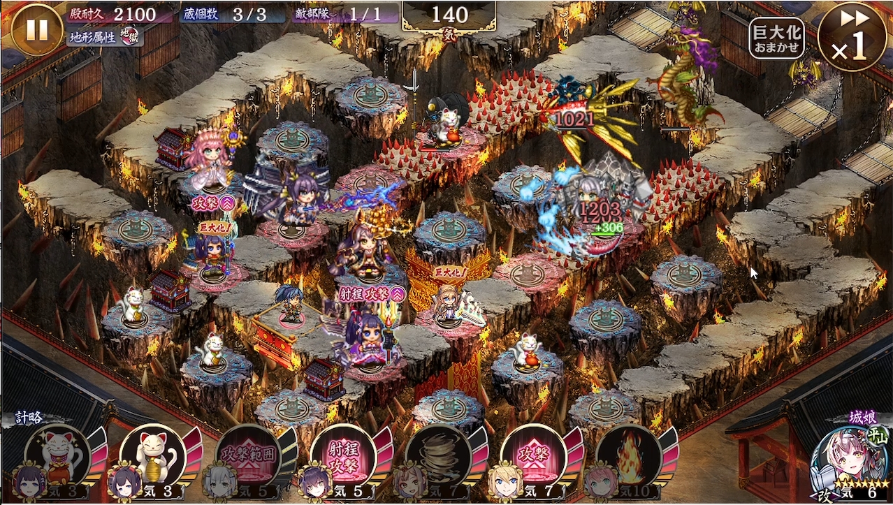 等活6層に続いてプレ山使用。龍と大砲以外は伏見に鷹計略をかけておけばほぼ処理できる