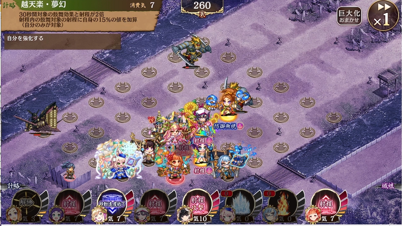 15審。上のコメント書いたときはできる気がしないと思ってたけど、ギリギリで最初を抜けれれればなんとかなった。最初の鬼武者や島津が真砂だけだとどうやっても間に合わないので、聖夜ウェミンと交互に足止めを繰り返すことで押し切った。正直自分の頭では戦功と同時とかはどうやっても思いつかない