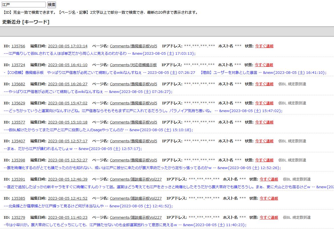 この一時間ぐらいに集中してる仮BLが全て枝ってことでしょ。一件の通報で雑談板とか色んなコメントが通報済みになってたら、まあ再犯を疑うよね