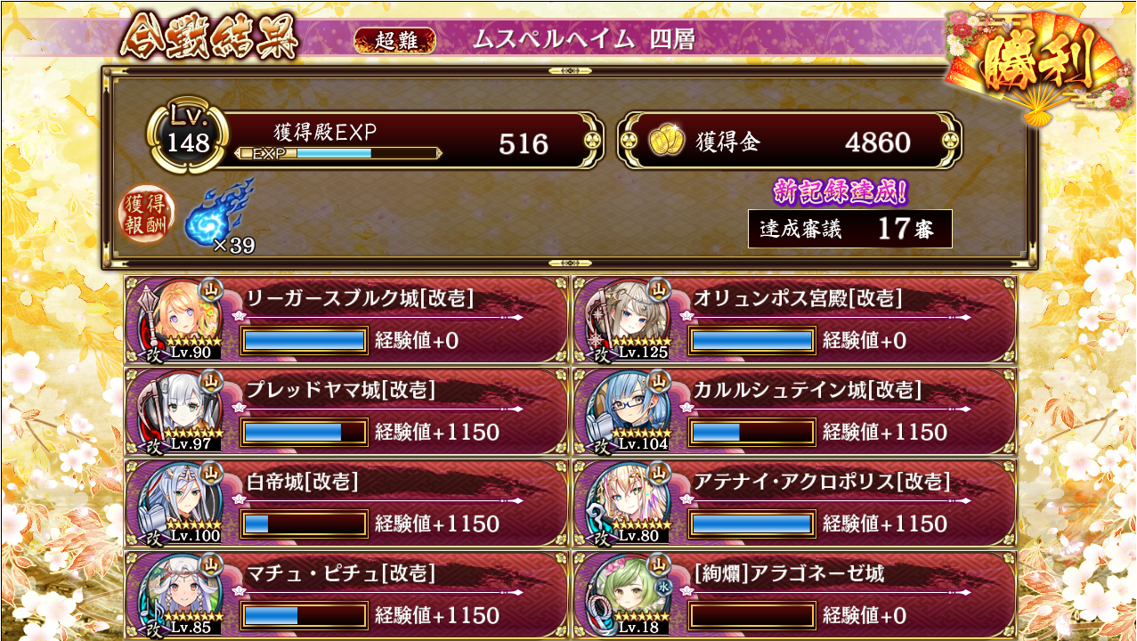 リソース確保できたので17審挑戦して何とかクリア。空蝉と編成特技と再配置を駆使する編成です。