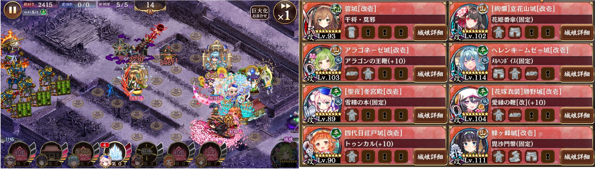 15審、もう少し現実的な編成で(やはり入手難易度は高いですが)。蓉城は最初の麒麟2体を撃破した後に配置。明智が変身したら23アラゴを撤退、蜂ヶ峰トークンは5波以外は24。四代目の加速を切らさないことが重要。初動はアラゴ、絢爛立花、嫁勝野で対処。最初の麒麟は蓉城なしで撃破しないといけないので、蜂ヶ峰トークンや聖夜冬宮計略で進行を遅らせる。明智は体力低いので、十分に射程を減らせば足止めなしでも処理可能。