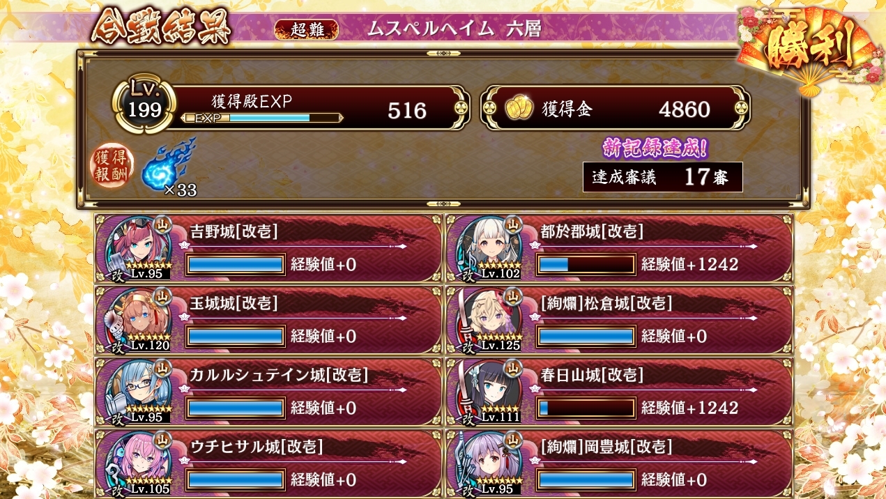 再配置撤退無し17審。一番最後に残ってたけど色々してたら7歌舞居ないけどなんとなかった。8吉野、16都於郡、13玉城、14春日山、17カルル、18絢爛松倉、11岡豊、20ウチヒサル。