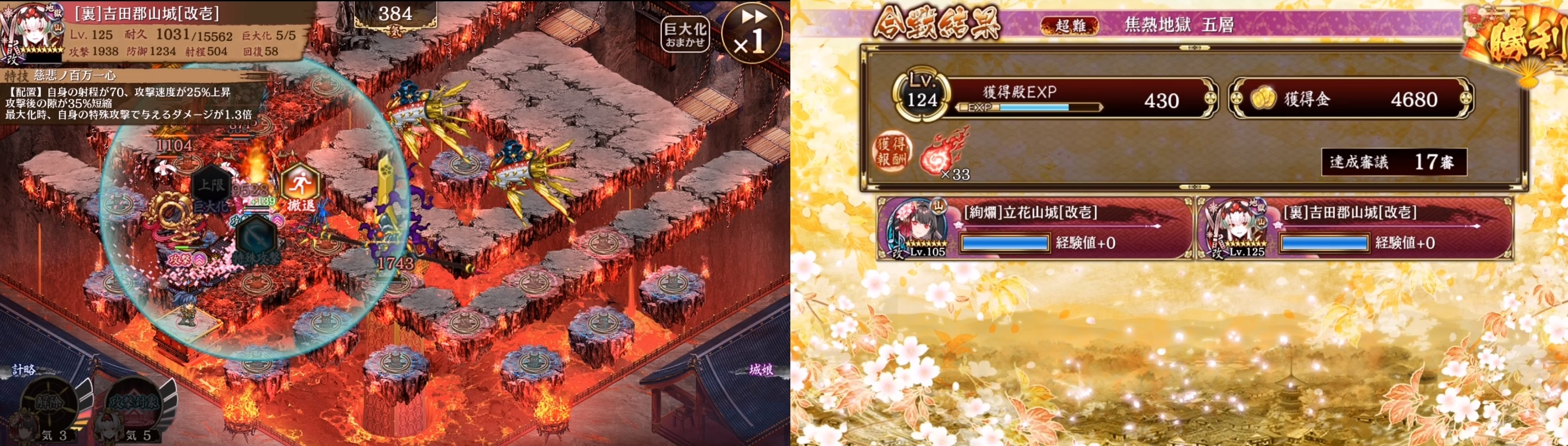 17審議2人(絢爛立花山,裏吉田郡山)。HP1万ぐらいあれば裏吉田郡山が前田利家の攻撃を1回耐えた。