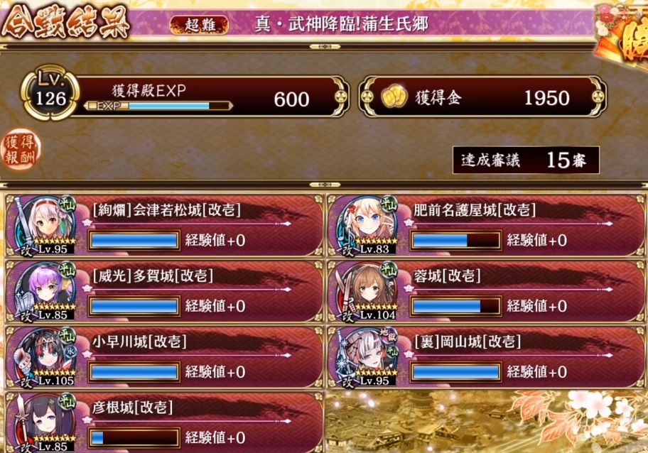 15審全戦功。会津若松計略で耐えて裏岡山で殴るだけ。射程減もノクバもいらない。