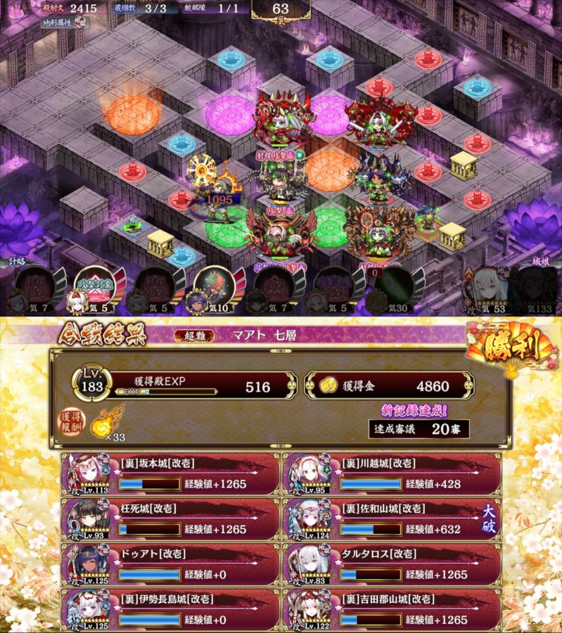3裏佐和山でラー受けを目論んだけど回復間に合わず落ちたので結局最後は空蝉連打。黄泉か裏桜尾交換してからかなぁと放置状態だったけどスッキリ
