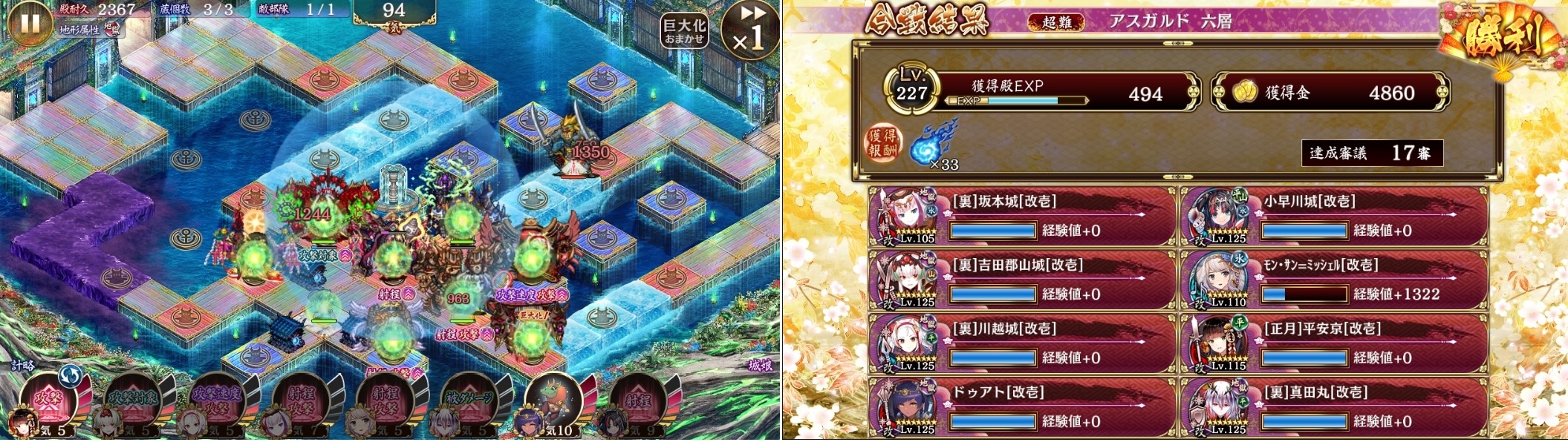 17審。裏坂本と小早川に鯱を積めるなら威光多賀を入れない方が楽だった。みんなもモンサン使おう。あとヨルムンを削りまくった正月平安強い