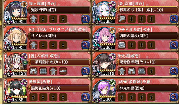 この編成で突破できたぜ。ウチヒサルよりも蜂をウィッチ化して再配置を減らしたほうが楽だったかも