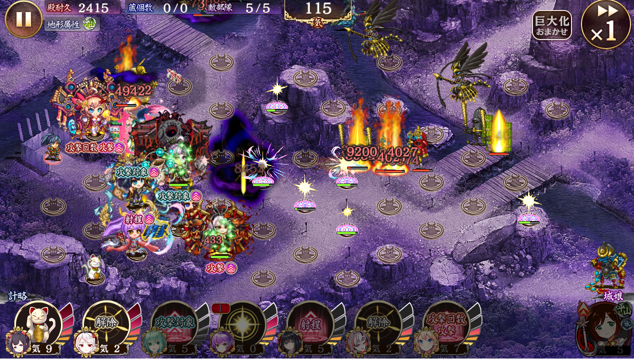 15審4戦功。裏岡山と絢爛佐倉の計略で敵を倒しながら、5波になったら黒田の進行方向に多賀トークンを並べる