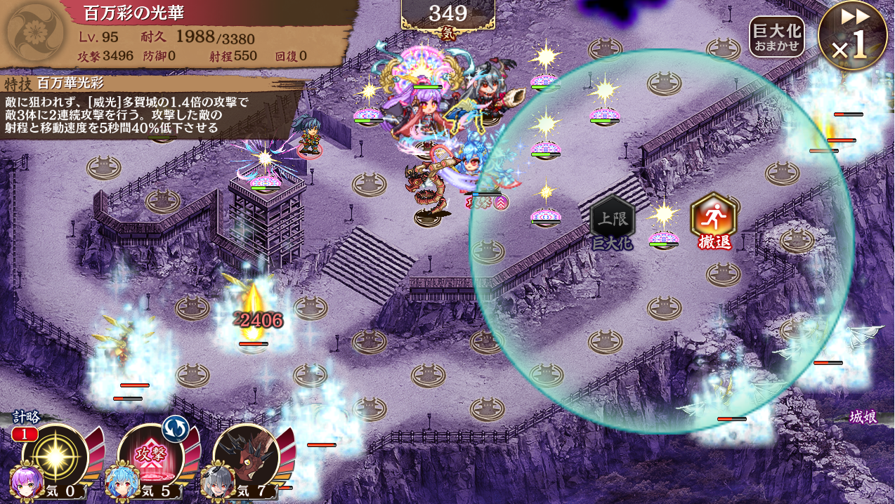 15審。古河氷結で鈍足させたところを多賀伏兵で焼くだけ。術ダメ75%減のおかげで伏兵が長持ちするので大分楽。威光多賀登場から武神一周で全武神15審議達成です。来る前はどこも無理だったのに異伝の力恐るべし…