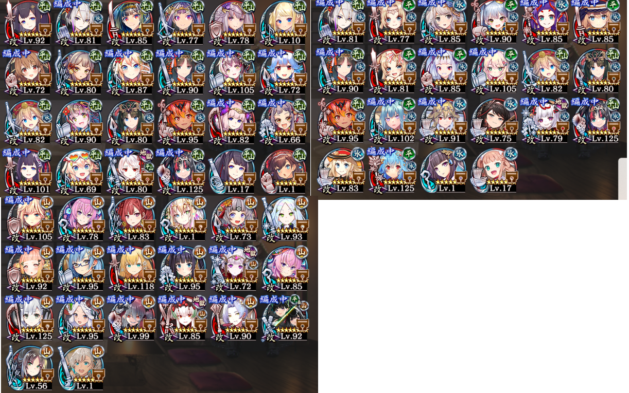平山、山、水の手持ちはこんな感じです。山がちょっと足りてないから岡豊城がよさそうな感じですかね?