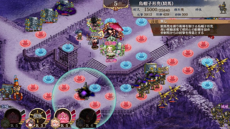 いまいちどういう編成をしたいのか分からない。福島序盤の鉄砲騎馬って全員初回計略短縮施設なしでももう聖夜基肄2回目の計略打てるタイミングの敵よね。既に絢爛立花山4/5、絢爛アラゴ5/5巨大化状態でこの直後の特殊攻撃で撃破よ(15審、配置気-10)。高取巨大化後回しは分かるけど巨大化しないは嘘でしょって感じだし