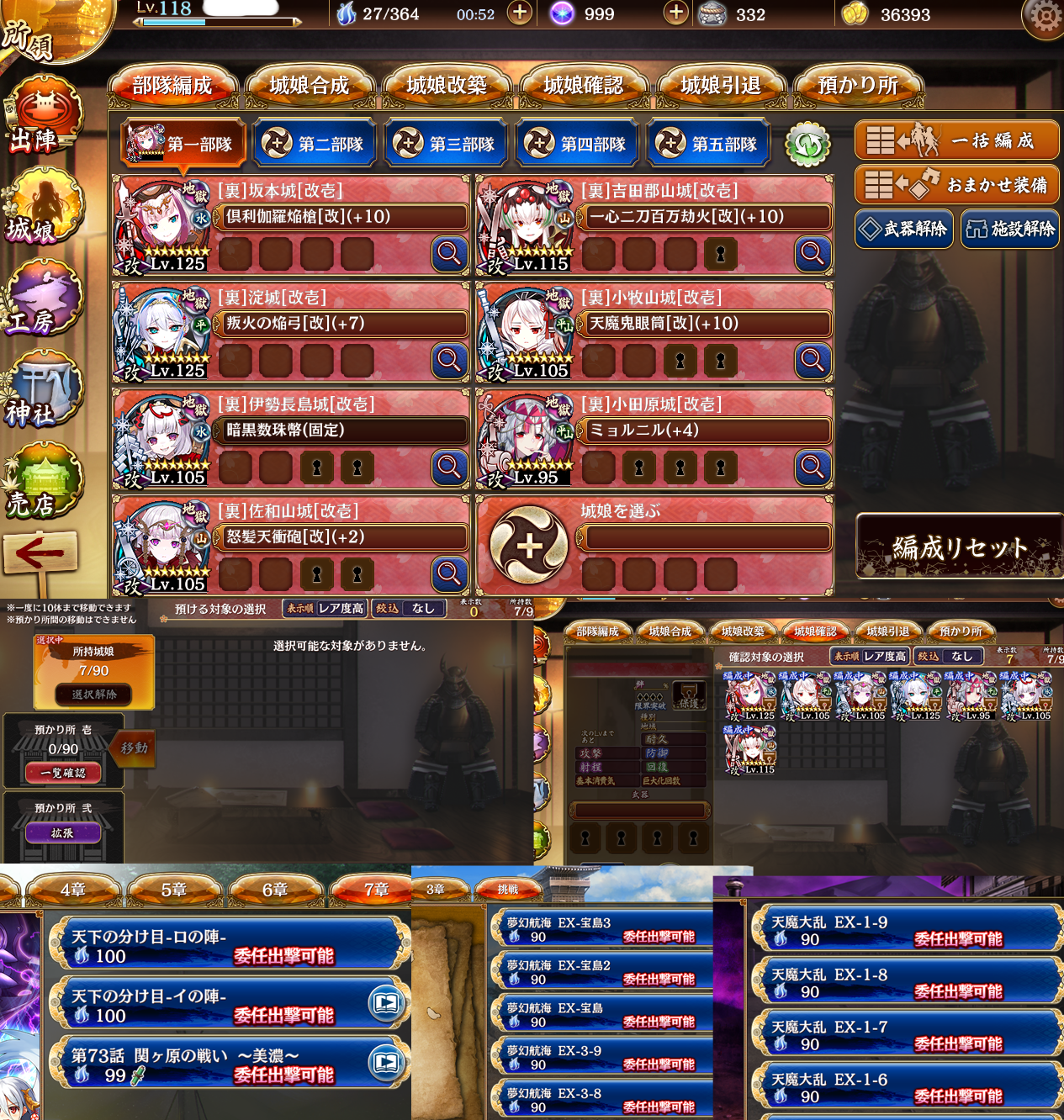 8周年から開始した新人殿です。地獄娘の美しさに脳の一部をヤられて地獄娘しか集めない縛りで攻略しておりましたが、今しがた天一・夢幻航海・天魔大乱の最後まで走り切りました。性質的にキツくて委任開放できてないのが4つと、どうしても無理だった超難が1つあるんですけど、それ以外は全部終わってます! 開始からほぼ城プロしかしてなかったくらいスゲー頑張ったので褒めて褒めて。ちなみに1枠空いてるのは、好きな子しか集めない主義故に人数が集まらなかったからです。23日にスタダが更新されるらしいので楽しみで仕方ないです。