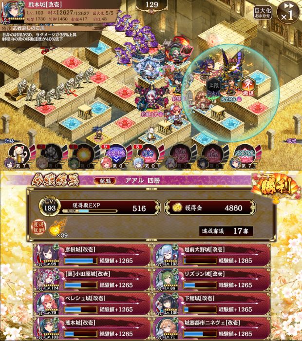 ガチャ星7抜き17審(彦根は三名城チケで取るものとする)。アヌビスは彦根に裏小田原計略かけて対処。彦根熊本は無施設でもOK(熊本に射程施設あると面倒が減る)