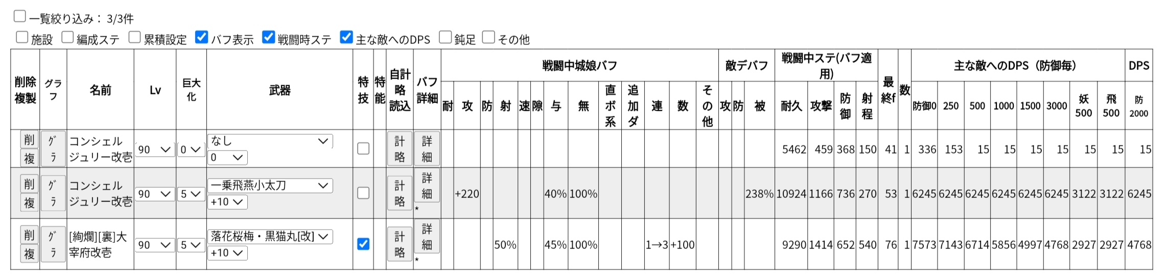 上にステ表が出てるLv90で合わせたらDPSはこんなもん(コンシェル→嫁敦賀に相当)