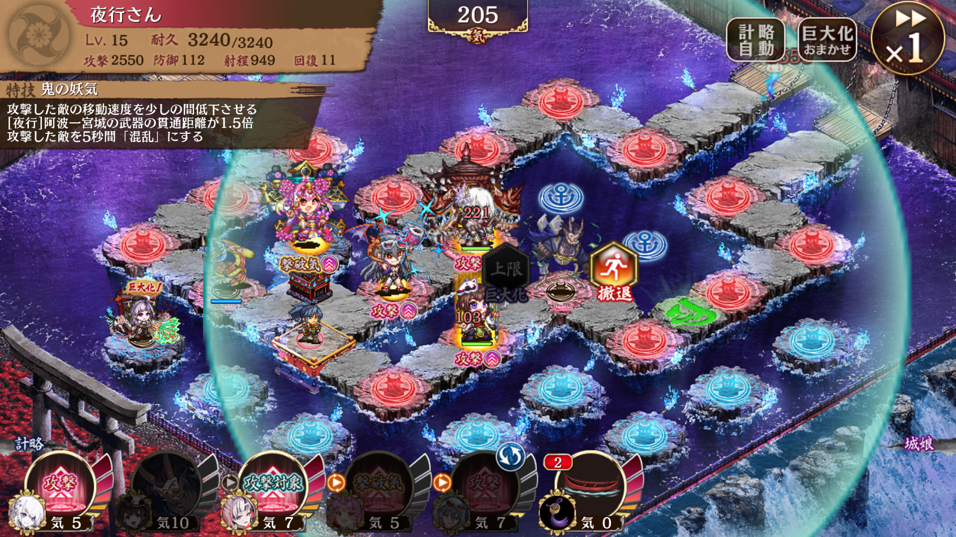 お迎え出来たからお試しで夜行さん出して見たが裏はせっちの射程バフ+夏ポエの攻撃バフで夜行さんこんな感じ、これで隠密で術攻撃2体混乱を撒けるんだろ強くね
