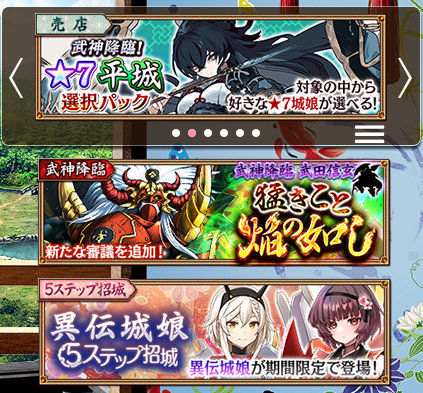 武神降臨☆7平城選択パックでコーロア城が表示されてるの、なんていうか...商売上手っすね...