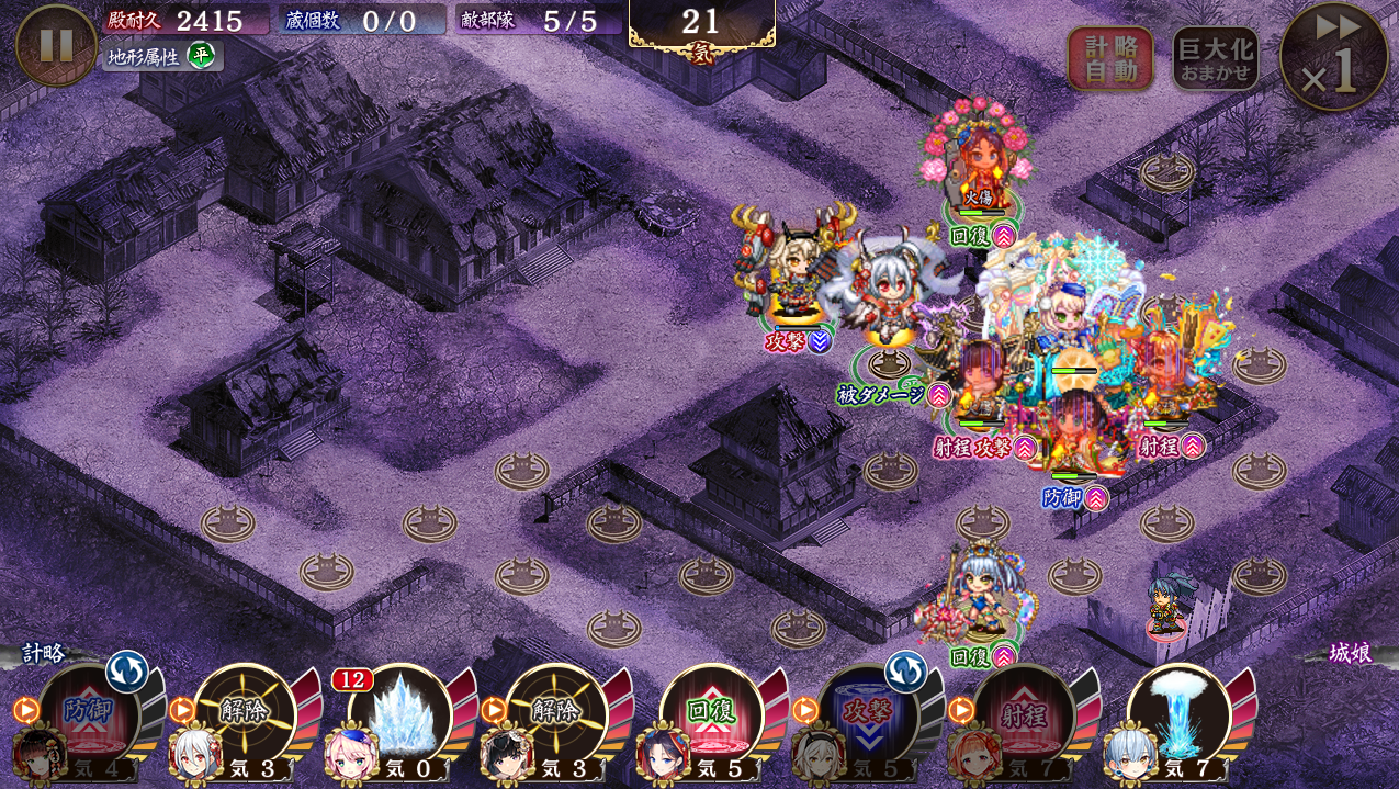 15審。雪華古賀と裏聚楽第を縛ってできるだけ真面目に足止めキャラを使うように心がけたが、運営の求めてるやり方はこれでいいんだろうか