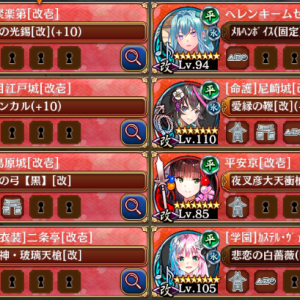 これは地形無視で適当にバフった無凸つっつー。数字撮りたかっただけなのでステージは蔵防衛金策の伍。非現実的なバフは乗せてないしまだ浜松の枠と残りで3人入れる余地有るということでここは一つ…