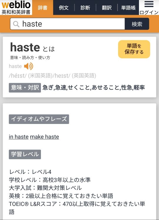 英語簡単に勉強してた身としてはhasteが中卒レベルだと見てそれはズレてるでしょと調べたけど、やっぱり中学単語には分類されないと思うな