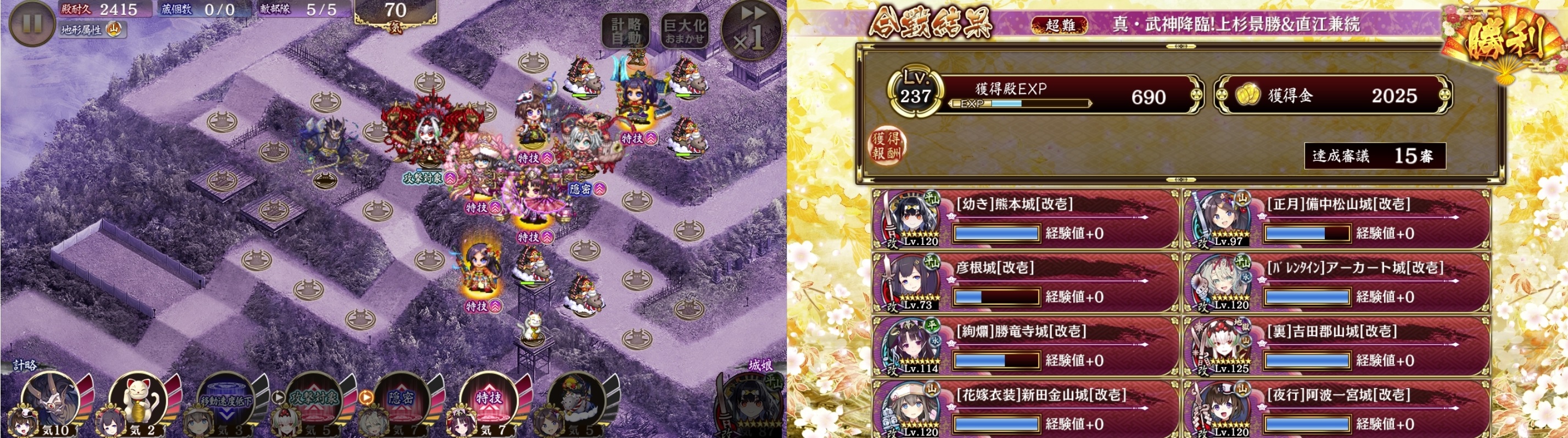 15審ガチャ7禁止縛り。異伝阿波一宮強い。兼続は2体目の鏡処理後すぐ覚醒が安定