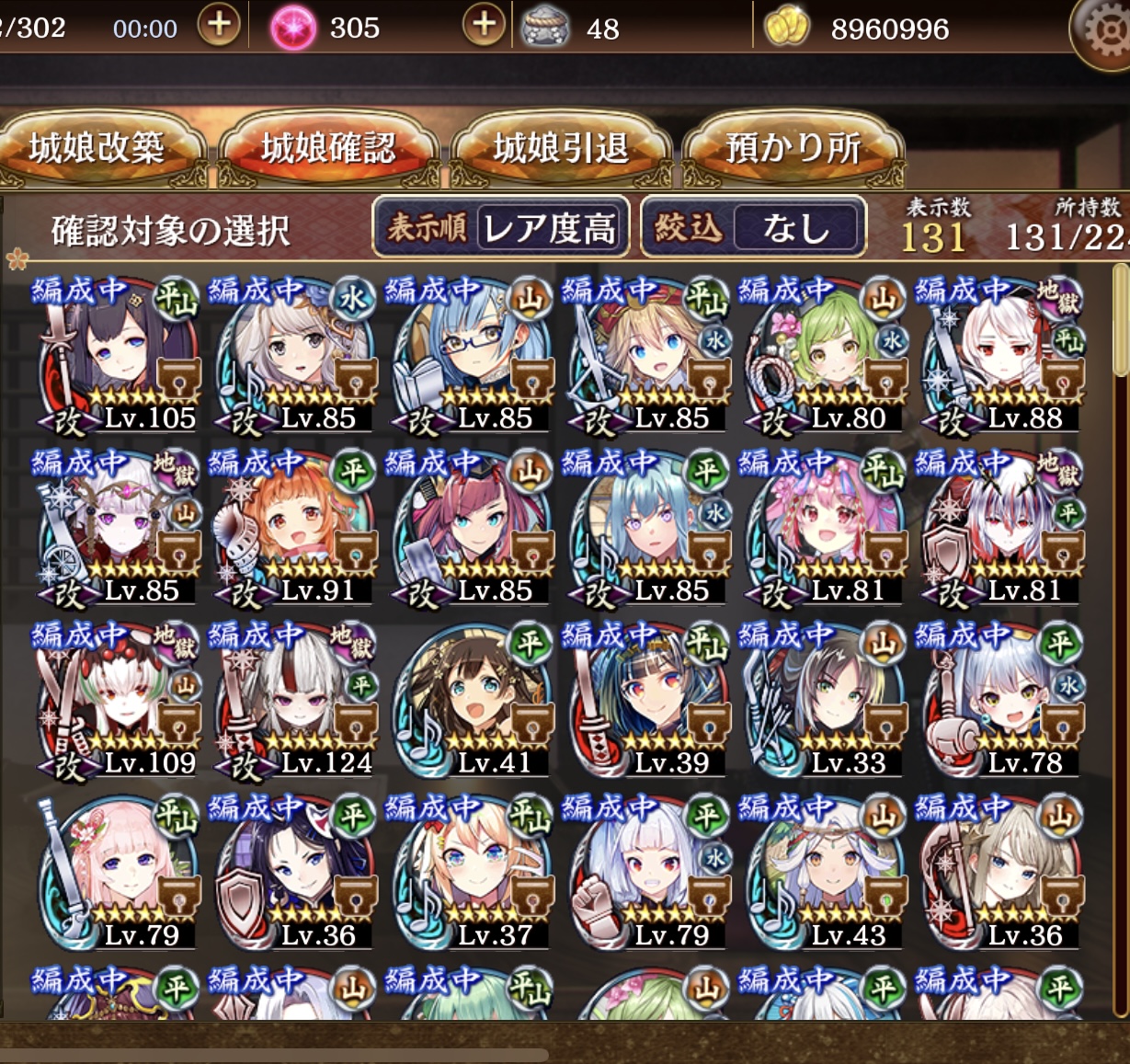 初めて千狐珠が300貯まったんで九龍か絢爛立花山を交換しようかと思います。手持ち全部じゃないけど載せてますのでどちらがおすすめか教えてください。又は異伝まで待つべきかとも考えますが、強いの来るかは分からないですよね?