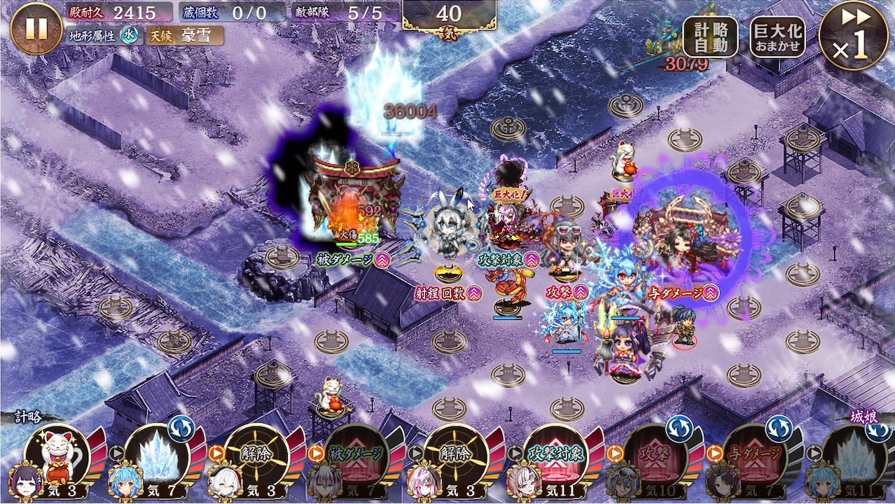 13審混成。佐竹自体は意外と攻撃力ないので被ダメ減が高いキャラなら十分足止めできる。古賀はバフ計略使わずにダメ計でひたすら左の爆弾処理。水染めするには気力がきつい。あと足止めキャラが少ない