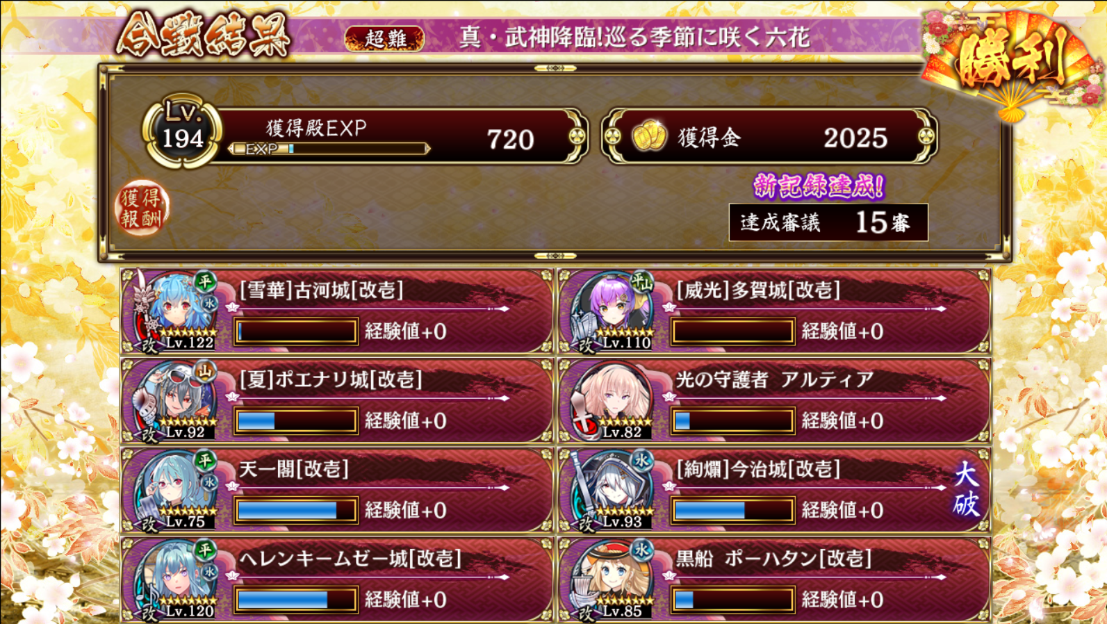 15審。終盤のラッシュに潰されるくらいに火力系のおりゃんが多すぎて難13審よりも苦労した。小早川+裏坂本を夏ポエ+アタッカーに変更して全体的に超ギリギリ。