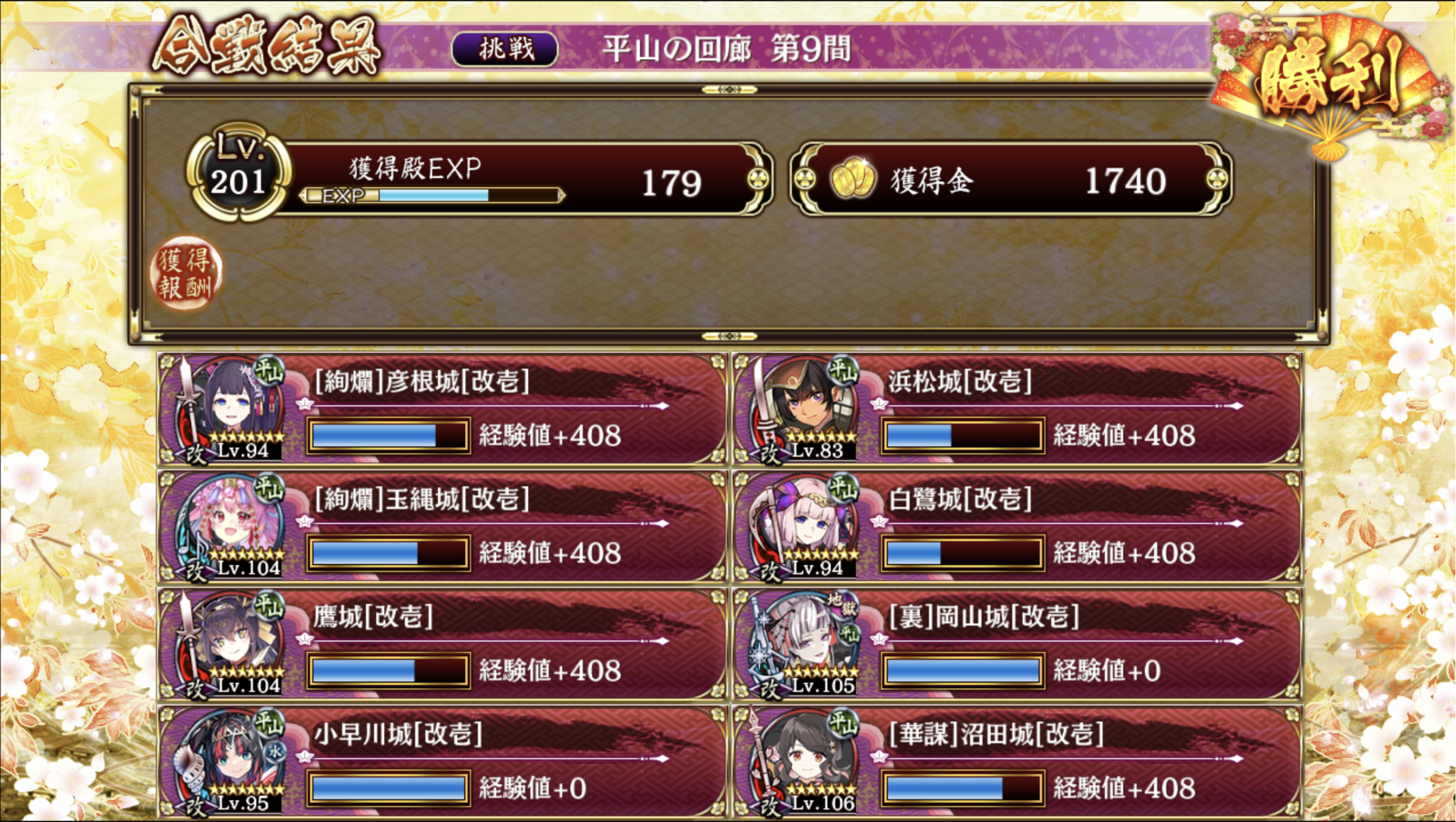 平山は本に依存しきってたので大変苦労しました。 左が異伝沼田,玉縄,白鷺(大破特技用)と浜松、右がそれ以外。 浜松計略は彦根→鷹の順。鷹城は巨大化無し。 左が片付いたら沼田と玉縄は右に引っ越し、鷹城の計略を沼田に掛けて特殊能力と併用出来ればだいたい終わり。