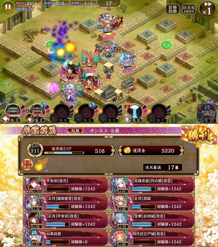 17審。正月忍城の試運転がてら。頑丈な壁を気軽に転戦できるのは楽しい。5秒に1回撃てる特殊攻撃としてみてもそれなりのダメージソースになる。