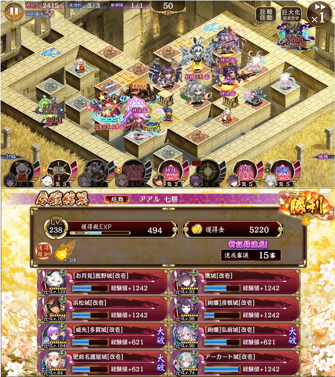鷹城特技で隠密倒して15審は行けた。性能強化大、全敵強化を外す。ぎりぎりだったけど小早川持ってれば楽なのかも