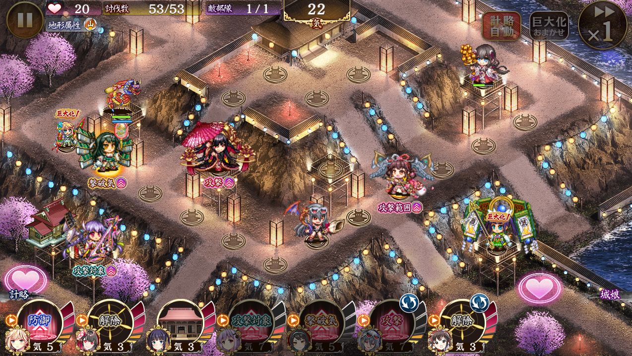 8夏ポエナリで画像みたいな転戦はいらなかった。絢爛佐土原を早めに配置して隠密計略で巨大化期を軽減→最大化で騎馬が突っ込んでくるまでに足止め計略が使えるようにしておく。ドラクル号の特殊攻撃で壁と横綱、16の上にいる兜を倒す。