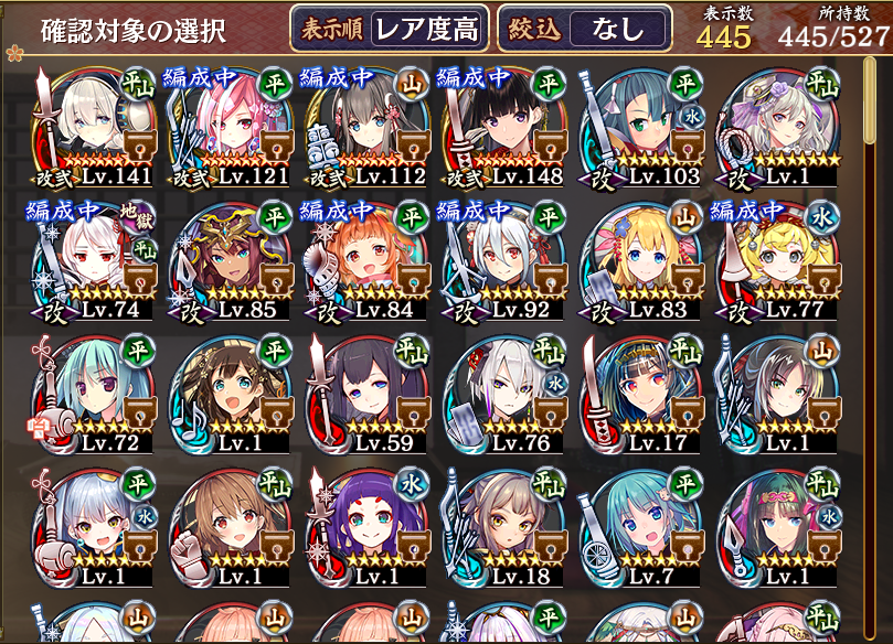レア度順だとこんな感じかな。この子ええなって子とか改築しちゃってるけど…